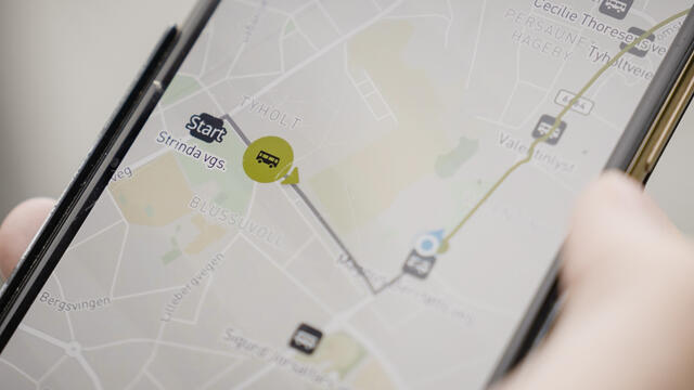 I den grå AtB-appen kan du nå se hvor bussen din er i et eget kart, og alltid vite hvor i løypa den ligger.