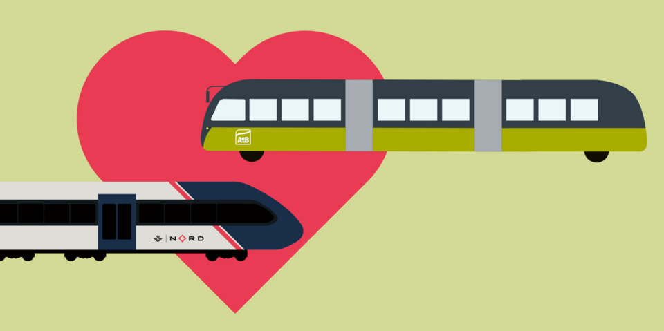 - Enkeltbillett og periodebillett – periodebillett fra Entur med enkeltbillett fra AtB, eller motsatt.