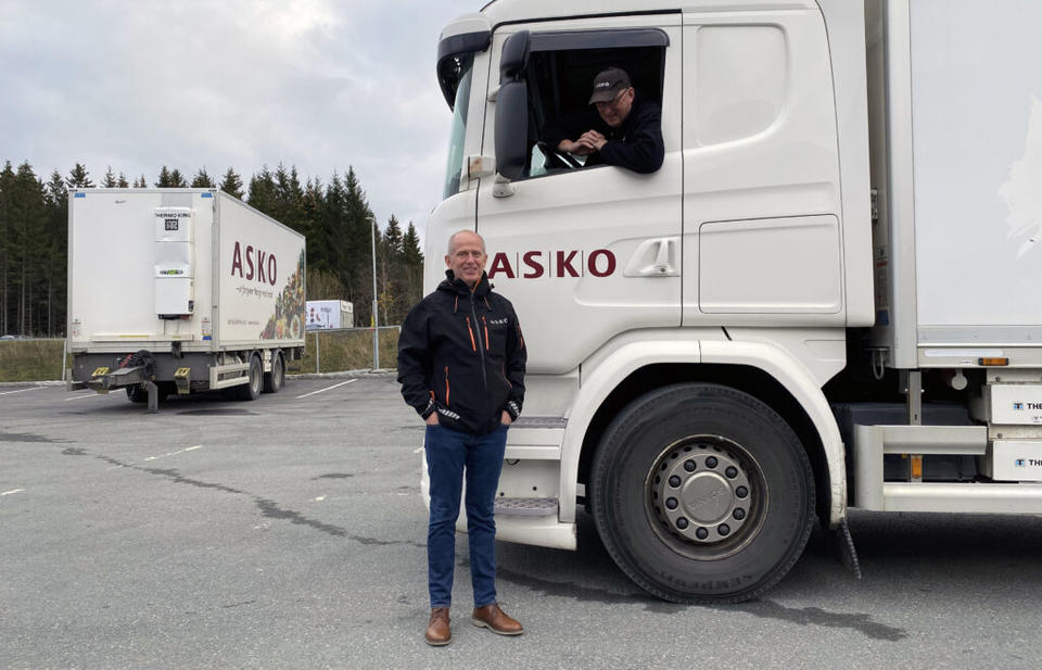 Direktør Jørn A. Endresen i ASKO Midt-Norge og sjåfør Harald Stokke.
